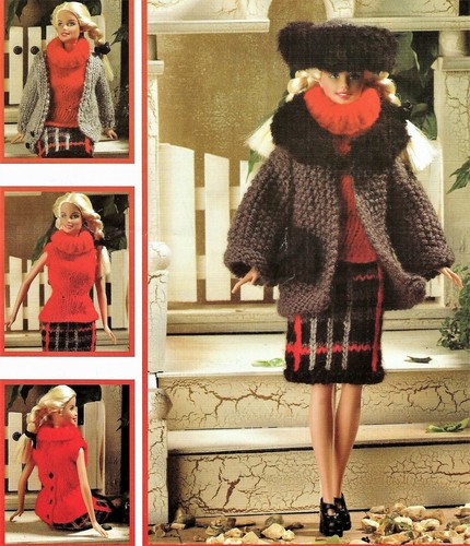 Knitting Pattern Teenage Dolls Barbie Clothes Tartan Skirt Jacket Coat Dk 11 5 Ebay